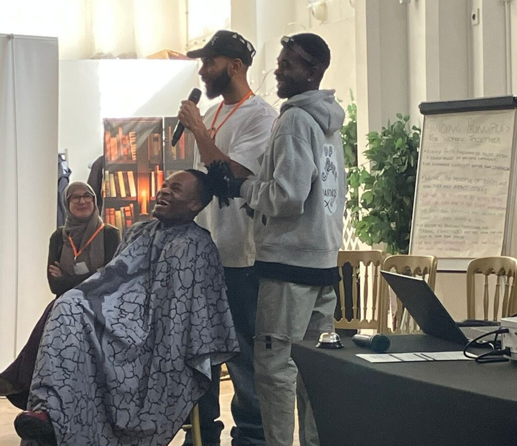 One of the most talked‑about moments came from Sheffield‑based In The Cut, a pop‑up barbershop project highlighting Black men’s mental health and the barbershop as a healing space. Their team of researchers, barbers and community advocates delivered a compelling presentation featuring a live haircut. As part of the Deep‑End Research Alliance, they also showcased the Community Researcher Model, which drew strong interest from attendees wanting to learn more.